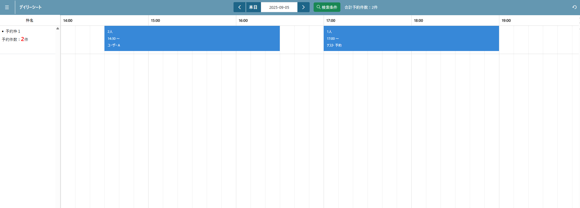 デイリーシート機能では一日の予約タイムスケジュールを確認することができます。
